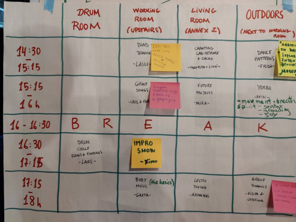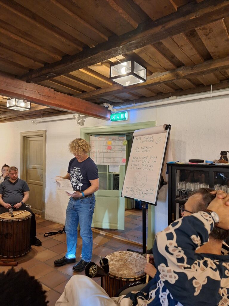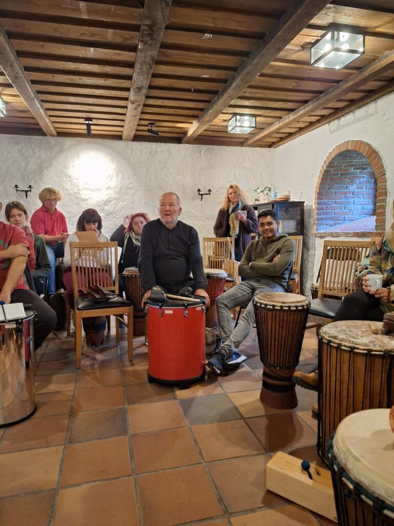 In addition to the core programme, participants are invited to share from their own practice through parallel sessions, allowing choice and relevance to different youth work contexts. Optional evening or morning sessions may include sound baths, movement sessions, yoga, Taketina rhythm work or small circles. All meals — breakfast, lunch and dinner — are shared on site.
